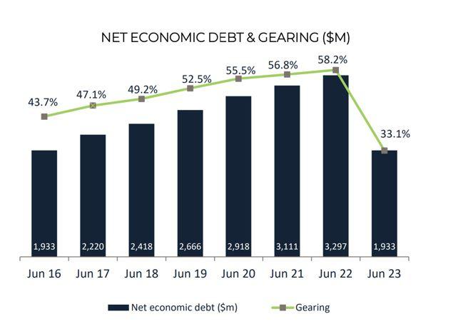Shareholders received a special dividend of 5.5c but the bulk of the proceeds were used to pay down debt which had been trending in an upwards direction in recent years.